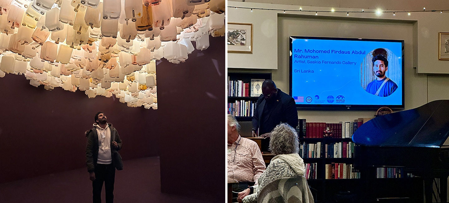 Firi at Hirsshorn Museum in Washington DC (Left) Artist presentation at Seattle, Washington (Right)