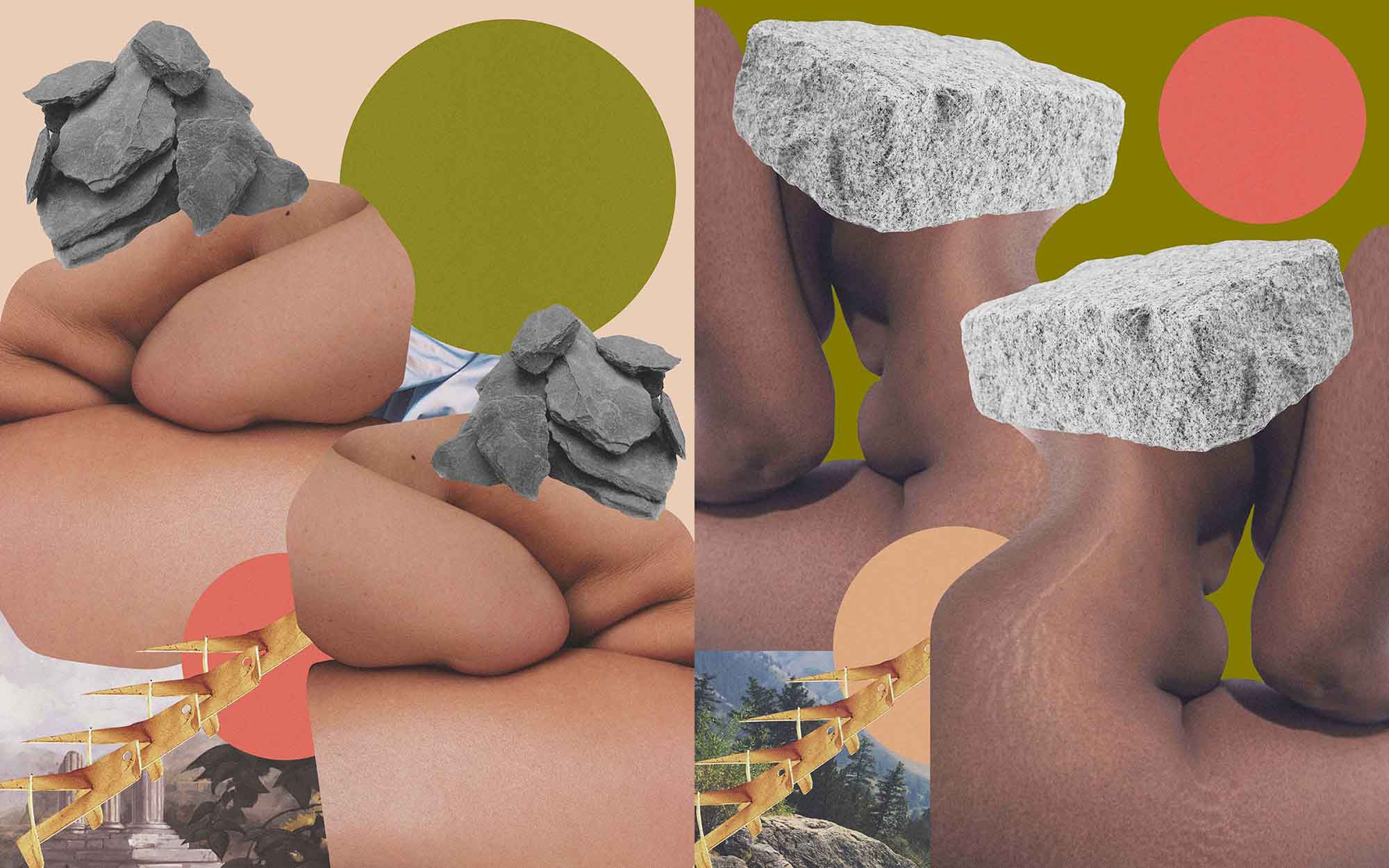 Muvindu Binoy’s Survival of the Fragile, was a reaction to the shifting dynamics between Sri Lanka’s politicians and the people they govern. Completed during the artist’s residency in Paris with the Cité Internationale des Arts in 2021, the twenty-six digital collage pieces were a response to the political and economic upheaval in Sri Lanka. The artist enlisted an object vocabulary lifted from roaming the streets and museums of Paris to poke holes in our false equation of fragility with weakness. Industrial blocks, rocks, and spools of barbed wire—symbols of barriers, obstacles and the toxic machismo, were incorporated to suggest that virility possesses its own kind of weakness. |